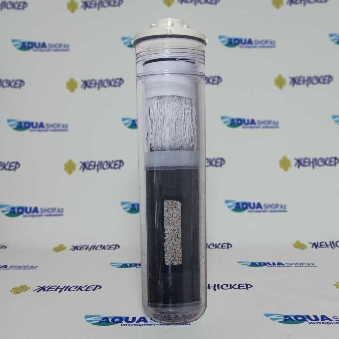 Через карбонблок с микроволокном АКВАЛЕН вода очищается от вредных органических и неорганических веществ, включая хлор и канцерогенные хлорорганические соединения, а также тяжелые металлы. Половолоконная мембрана и ионы серебра в карбонблоке обеспечивают надежную 100% антибактериальную защиту. Натуральный природный минерал субкристаллический перламутровый доломит обогащает воду кальцием и магнием, улучшая её качество.