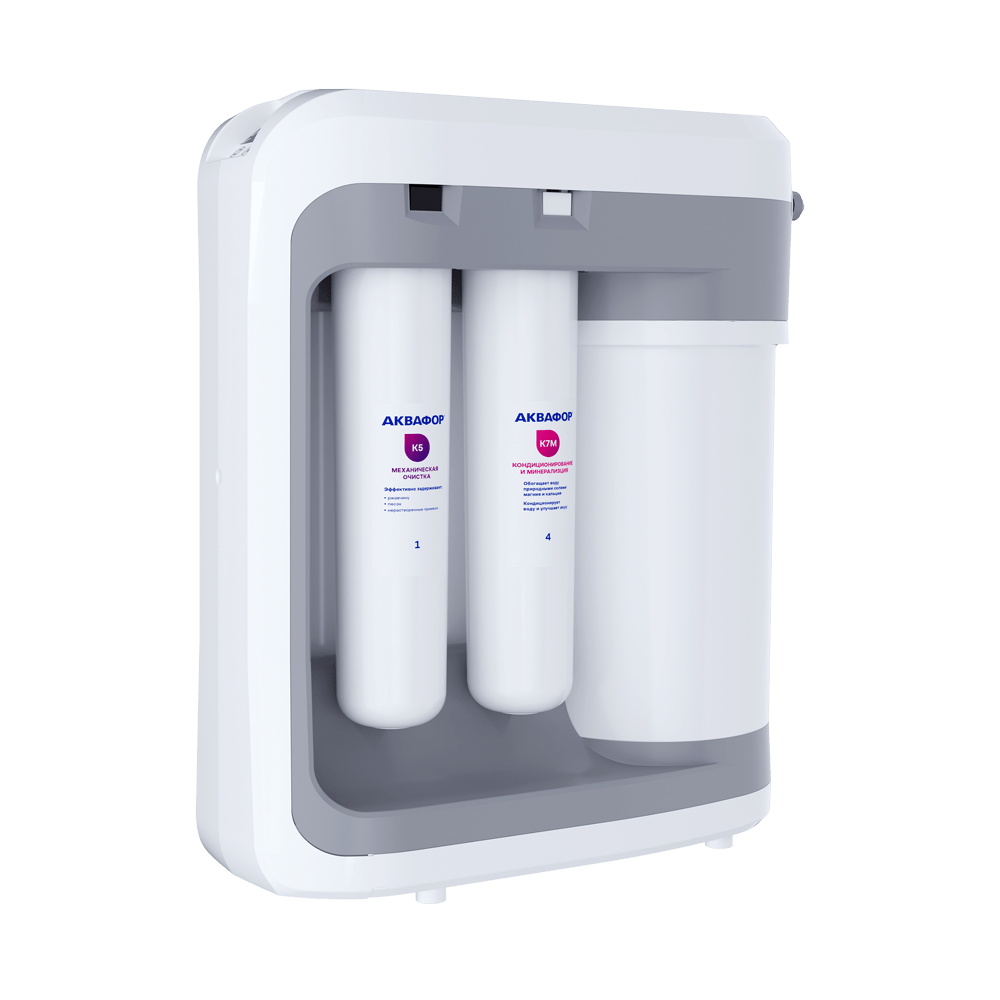 Первая в мире система, которая обладает интеллектуальной контроллером управления, что позволяет в свою очередь использовать весь ресурс сменных модулей, при этом не перешагнуть за его пределы. Имея встроенный насос повышения давления, обеспечивает максимальную скорость наполнения ёмкости в 5 литров и работы системы при давлении воды в трубах от 0.9 атмосферы.